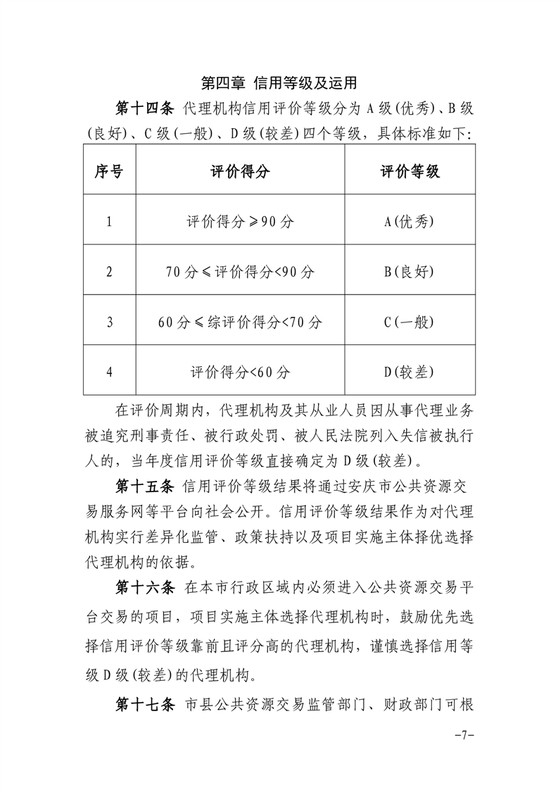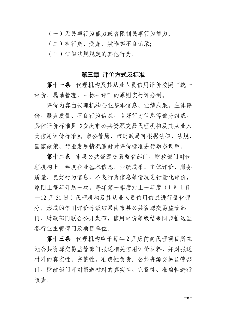 安慶市公管局 安慶市財(cái)政局關(guān)于印發(fā)《安慶市公共資源交易代理機(jī)構(gòu)及其從業(yè)人員信用評(píng)價(jià)管理暫行辦法》的通知